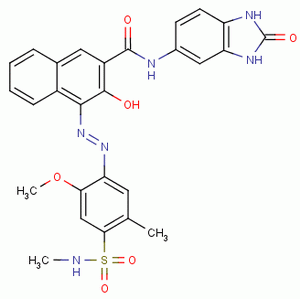Alias:2-Naphthalenecarboxamide, N- (2,3-dihydro-2-oxo-1H-benzimidazol-5-yl) -3-hydroxy-4 - ((2-méthoxy-5-méthyl-4 - ((méthylamino) sulfonyl) phényl) azo) -; 2-Naphthalenecarboxamide, N- (2,3-dihydro-2-oxo-1H-benzimidazol-5-yl) -3-hydroxy-4- (2- (2-méthoxy-5-méthyl-4 - ((méthylamino) sulfonyl) phényl) diazényl) -; N- (2,3-dihydro-2-oxo-1H-benzimidazole-5-yl) -3-hydroxy-4 - (((2-méthoxy-5-méthyl-4 - ((méthylamino) sulfonyl) phényl) azo) le naphtalène-2-carboxamide; 12516; Écarlate profond; Carmin permanent HF4C; Rouge pivoine [HO]; ; (4Z) -4- {2- [2-méthoxy-5-méthyl-4- (méthylsulfamoyl) phényl] hydrazinylidène} -3-oxo-N- (2-oxo-2,3-dihydro-1H-benzimidazole-5 -yl) -3,4-dihydronaphtalène-2-carboxamide