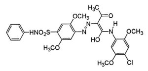 IUPAC Name: N-(4-chloro-2,5-dimethoxyphenyl)-2-[[2,5-dimethoxy-4-(phenylsulfamoyl)phenyl]diazenyl]-3-oxobutanamide